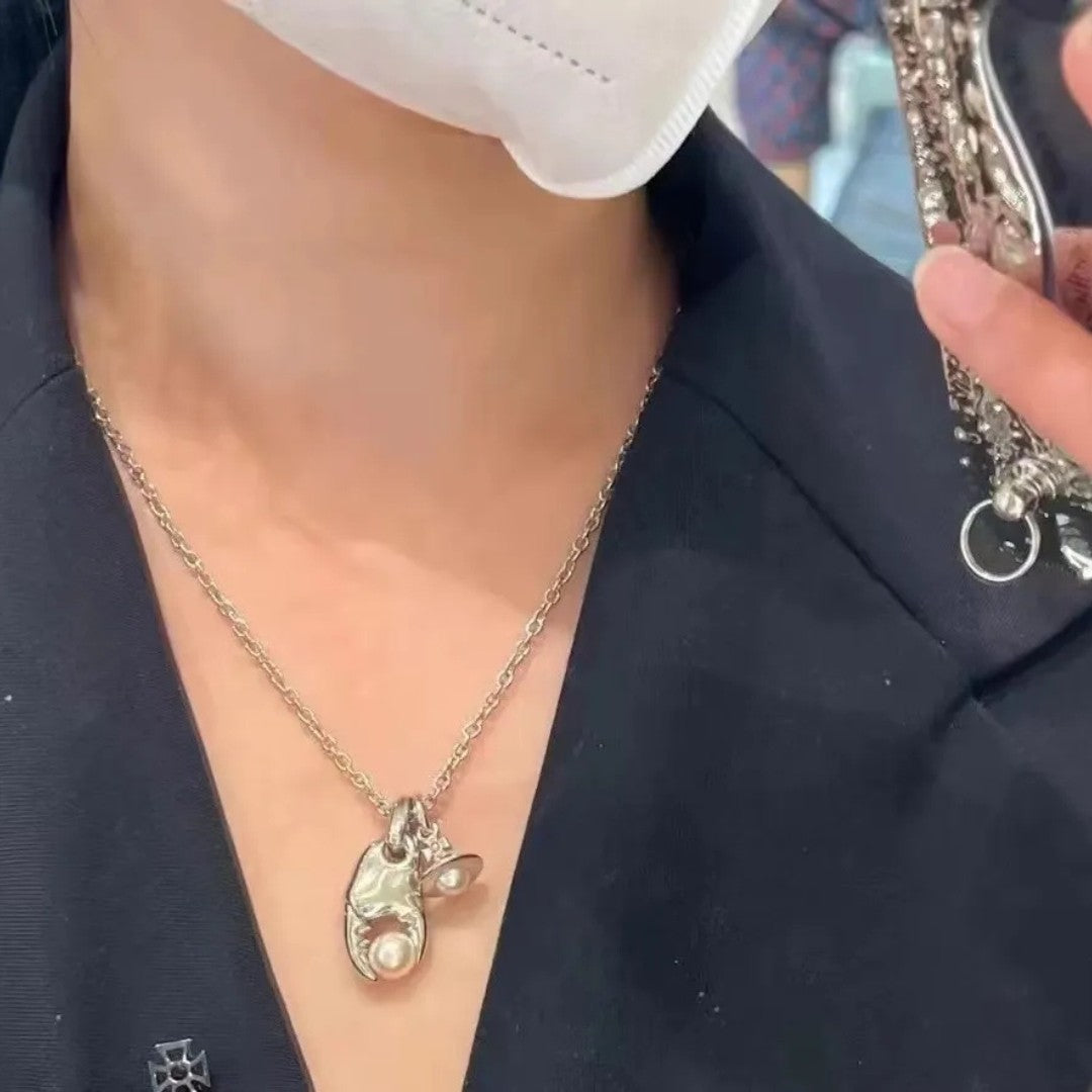 Dive into nautical charm with the FREDA Crab Pincer Pearl Necklace. This striking piece features a polished silver-tone crab claw charm delicately gripping a lustrous faux pearl, paired with a mini Saturn Orb pendant. It’s a whimsical yet elegant statement inspired by ocean treasures.