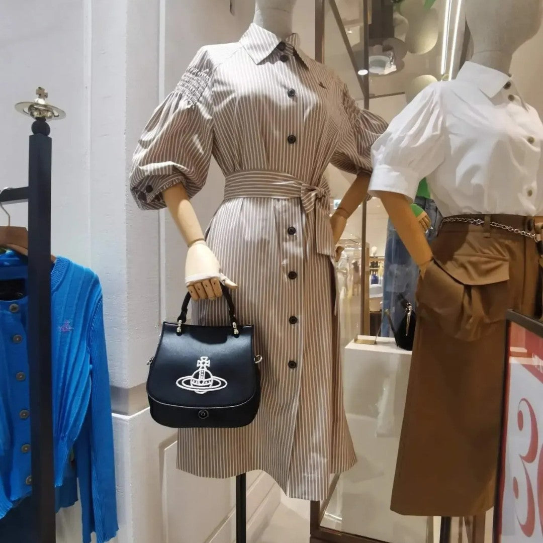 This elegant handbag is crafted from smooth leather with refined metallic accents and features the iconic Saturn emblem. Perfect for elevating both day and evening looks.