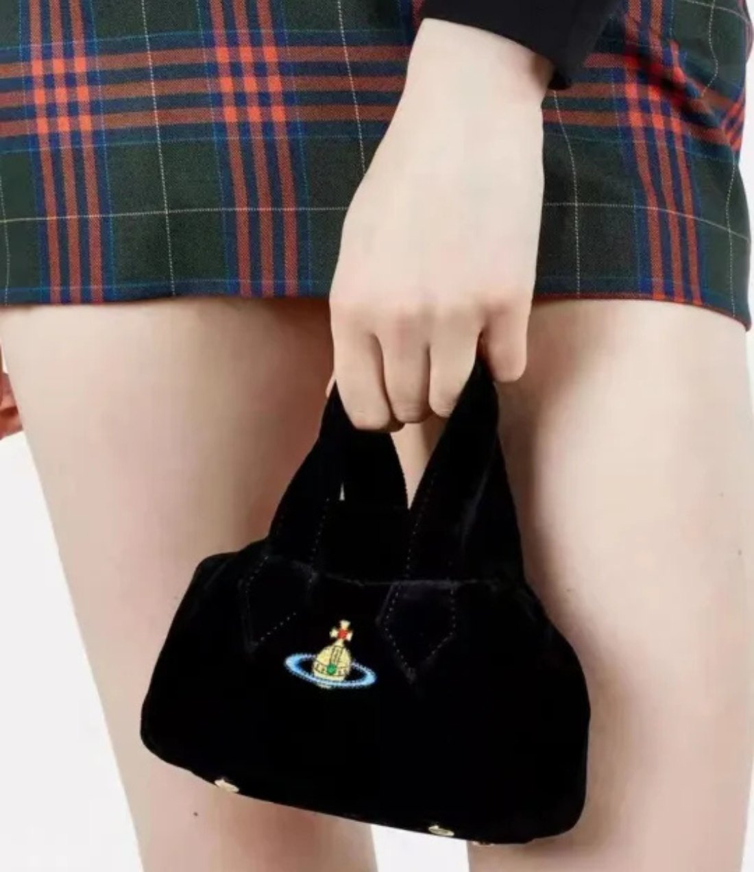 Petite and plush, this velvet mini handbag delivers vintage charm with rich texture and a soft silhouette. Finished with a delicate chain strap and signature embroidered emblem, it’s perfect for evening looks or romantic styling.