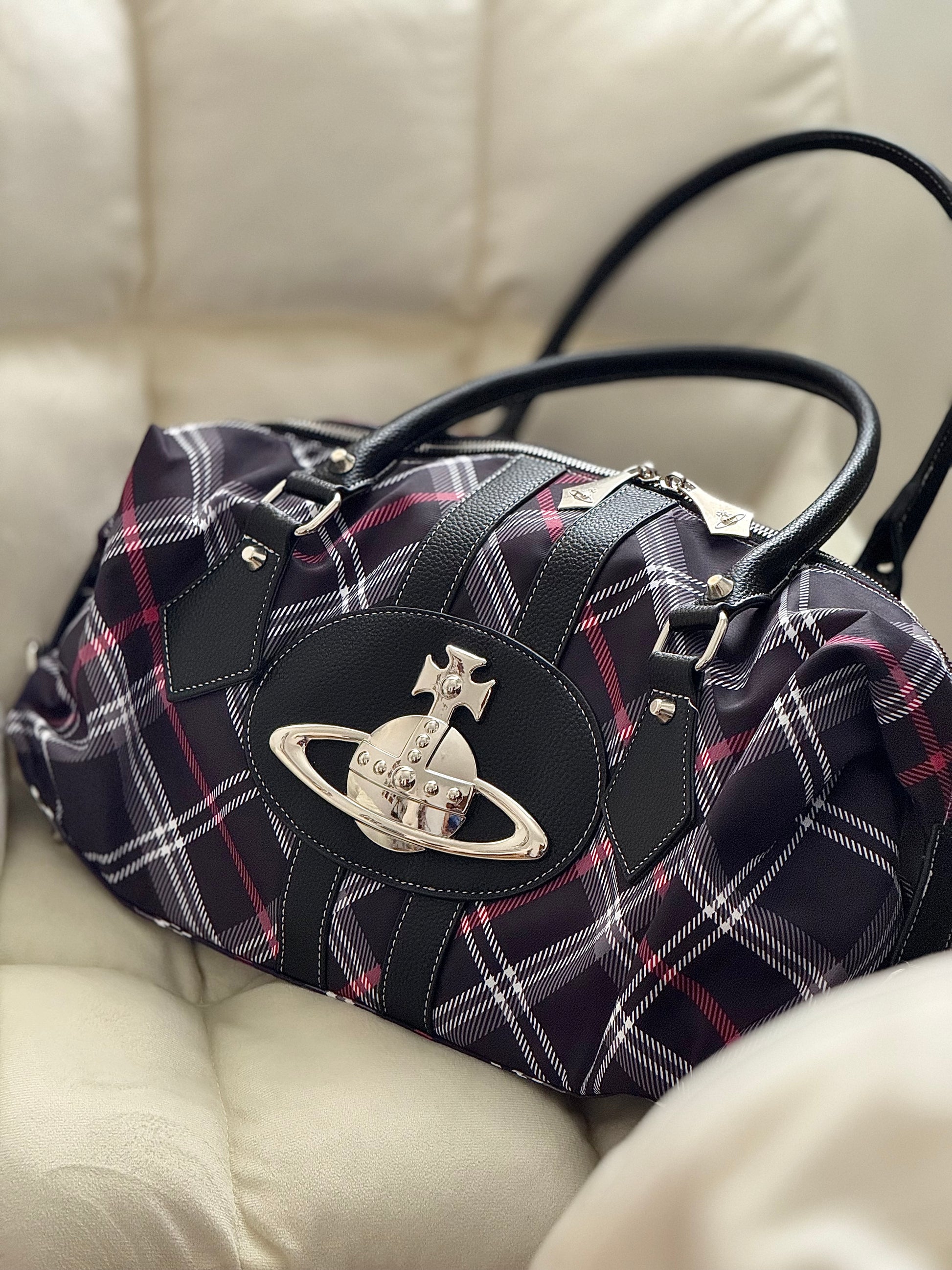 Make a statement wherever you go with this standout  shoulder bag. Featuring the unmistakable Orb logo front and center, it's wrapped in bold tartan prints that fuse heritage with high fashion. Perfect for your everyday essentials or as a standout travel piece, this bag blends edge and elegance effortlessly.